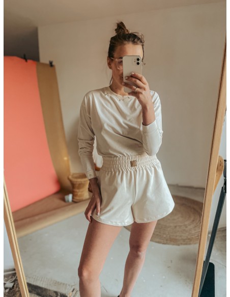 Szorty wykonane z mięsistej bawełny w ciepłym, słonecznym, kremowym kolorze.