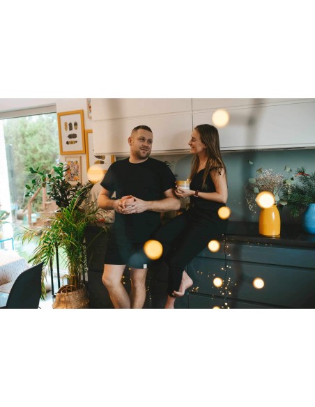 Koszulka ma prostą formę, w gorze zakończona ściągaczem. Stworzona z myślą o Panach. Możesz stworzyć z niej duet piżamowy, bądź nosić na co dzień.
