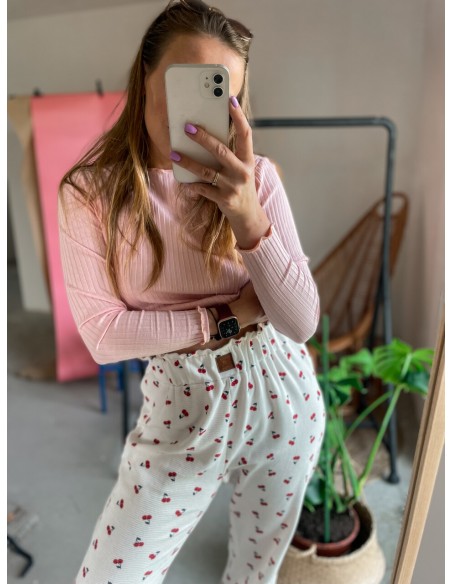 Wykonane z 100% bezpiecznej bawełny. Faktura delikatnego wafelka. Owocowy nadruk wisienek ma nawiązywać do lata, beztroski i słodkich owoców.