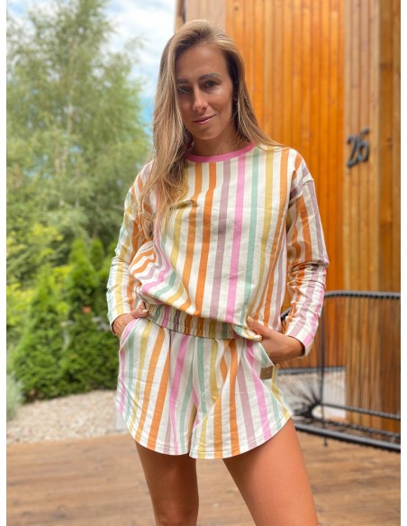 Poznaj ulubiony krój longsleeva w hitowej tęczowej dzianinie lastrico. Wykonany z grubszej, ale bardzo miękkiej i mięsistej dzianiny.
