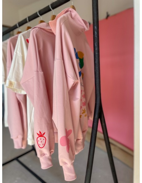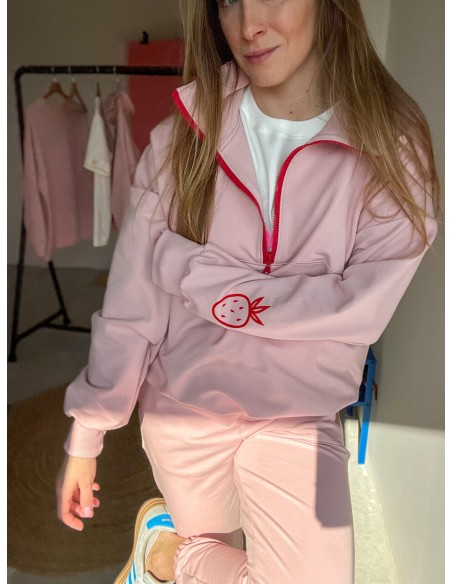 Minimalistyczny rysunek naszej truskawki w rękawku, ma przywołać ciepłe, letnie myśli. Efekt delikatnego meszku, uwypuklenia nadruku.