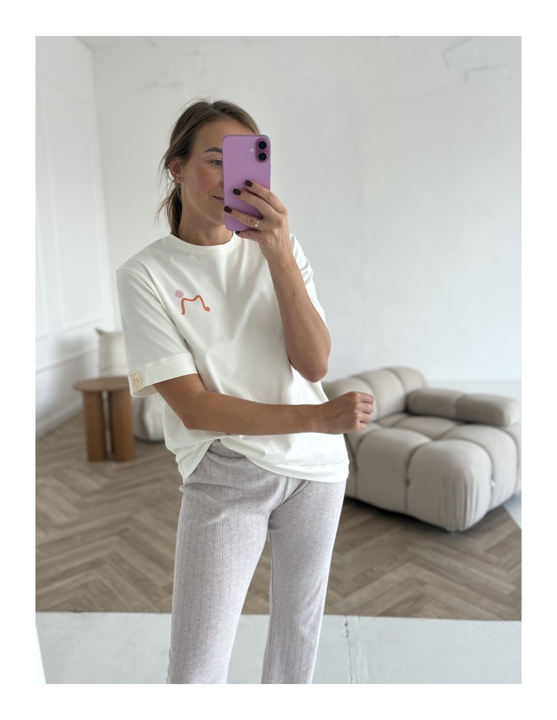 Na piersi literka M, niech będzie małą zachętą do subtelnego ruchu i pracy nad swoim ciałkiem.