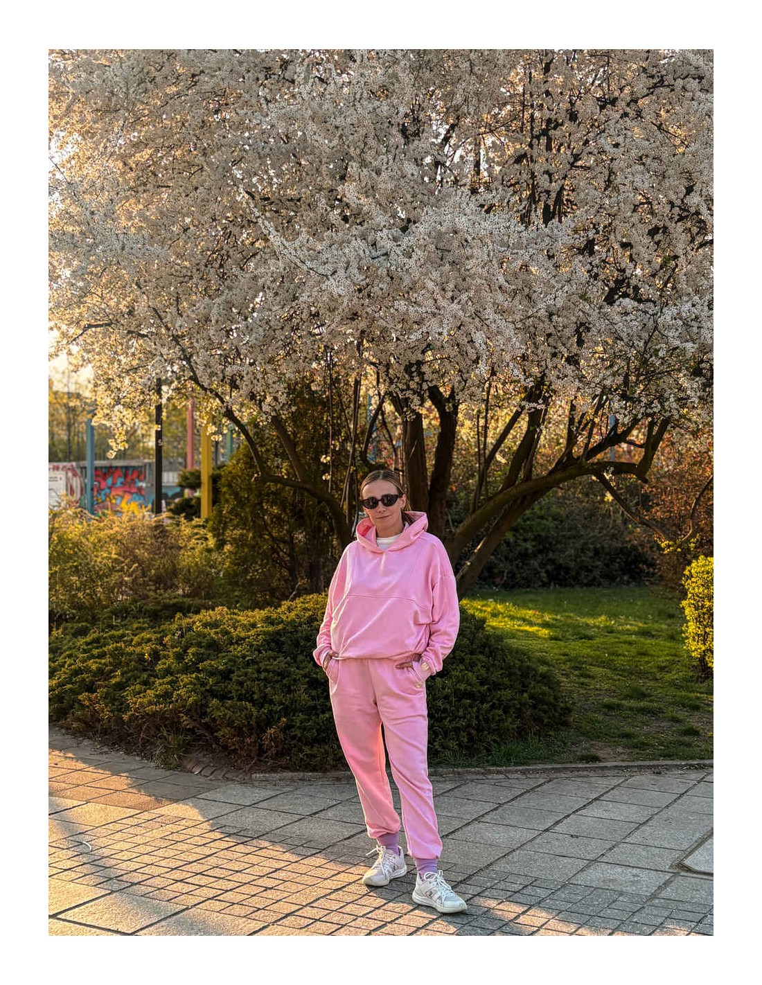 Wiosenny, energetyczny i na maaaksssa wygodny dres w kolorze cukierkowego różu. Zestaw został wykonany z miłej bawełny z dodatkiem wiskozy. Ma formę lejącą i mocno wygładzoną.